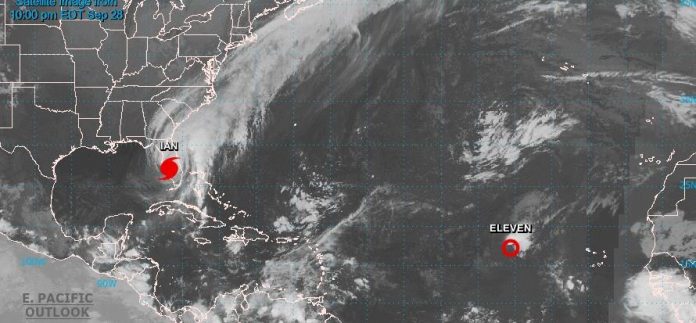 El NHC señala que “Ian continúa azotando la península de Florida con marejadas ciclónicas, vientos e inundaciones catastróficas”.