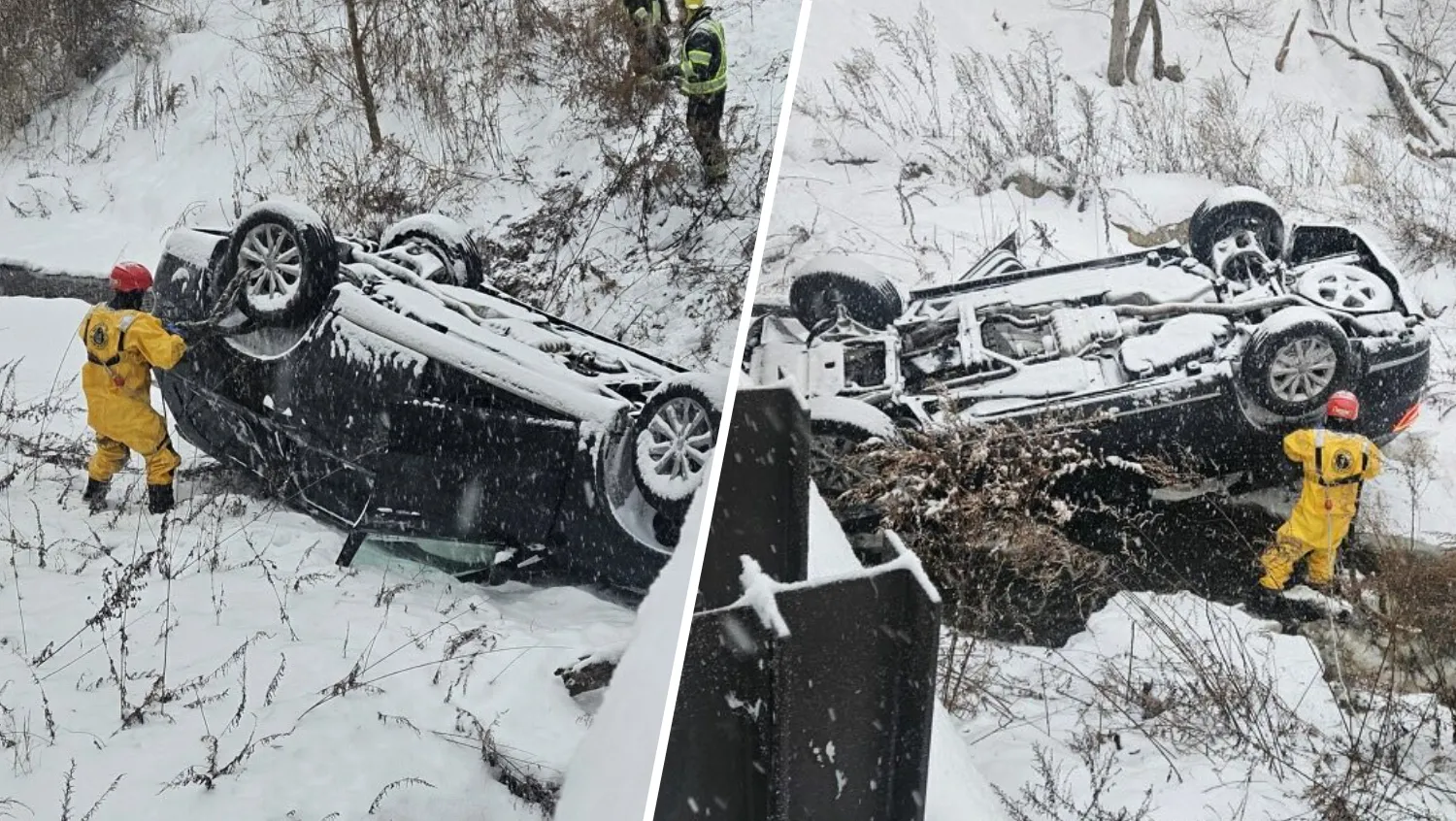 Un vehículo se volcó mientras circulaba sobre la nieve y terminó boca abajo en un río de Nueva Jersey, según informó el departamento de bomberos local.