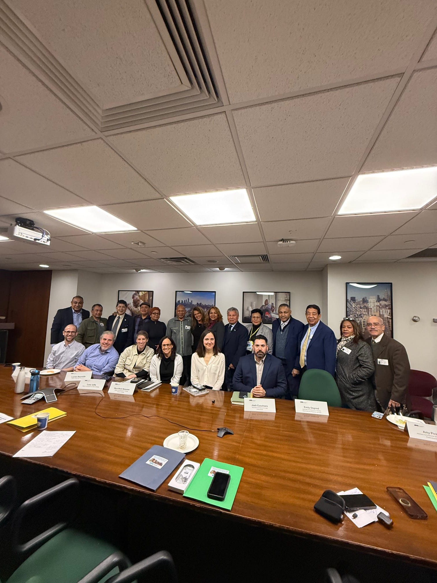 La comisionada fue acompañada de Lucy Joffe, Comisionada Adjunta de Estrategias Políticas, Meryl Block Weissman, Comisionada Adjunto de Acceso y Estabilidad a la Vivienda, Josh Cucchiaro, Comisionado Asociado de Cumplimiento de la Ley, Lucian Reynolds, Jefe de Personal de la Unidad de Nuevas Construcciones, Dave Seliger, Director de la Oficina de Equidad Digital quienes hablaron del trabajo de sus respectivas divisiones y contestaron preguntas de los asistentes.